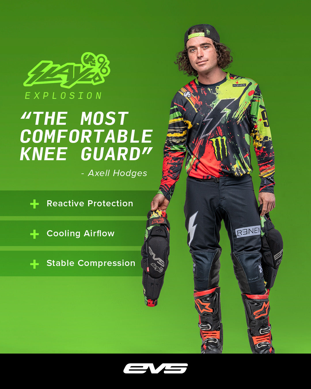 EVS and Axell Hodges is teaming up with Renen—the creative force led by Pete Fox—for a first-of-its-kind design collaboration that blends high-impact style with EVS protection engineering. Riders can expect a look that’s loud, fresh, and built for those who never blend in. Full announcement dropping soon.